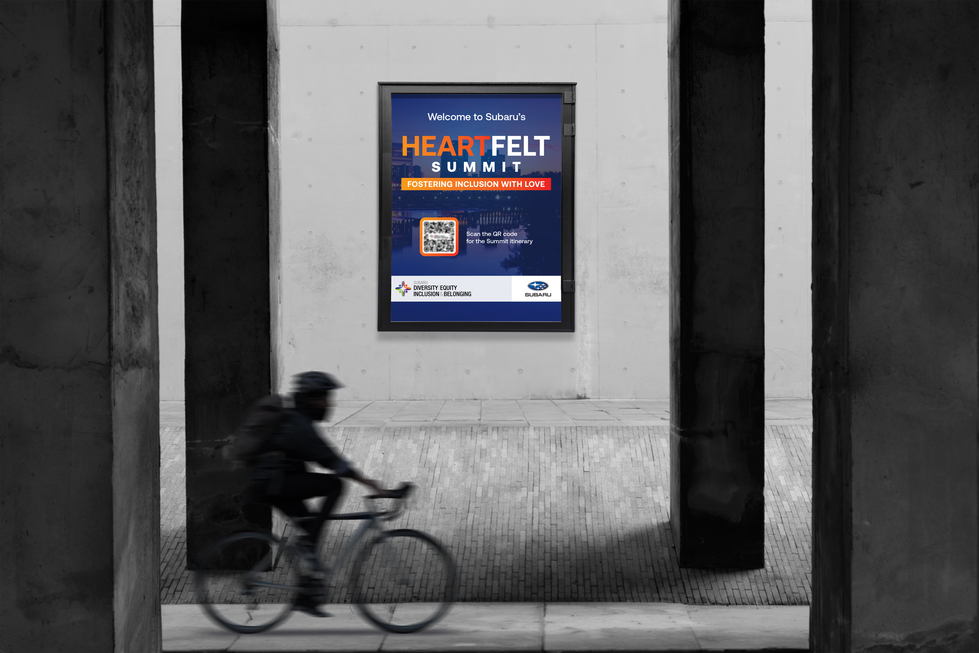 The design approach emphasized Subaru’s commitment to diversity, equity, inclusion, and belonging, ensuring that every element reflected the company’s values and vision. By tying the materials to the overarching theme, the branding not only inspired engagement but also aimed to sustain the conversation long after the event.